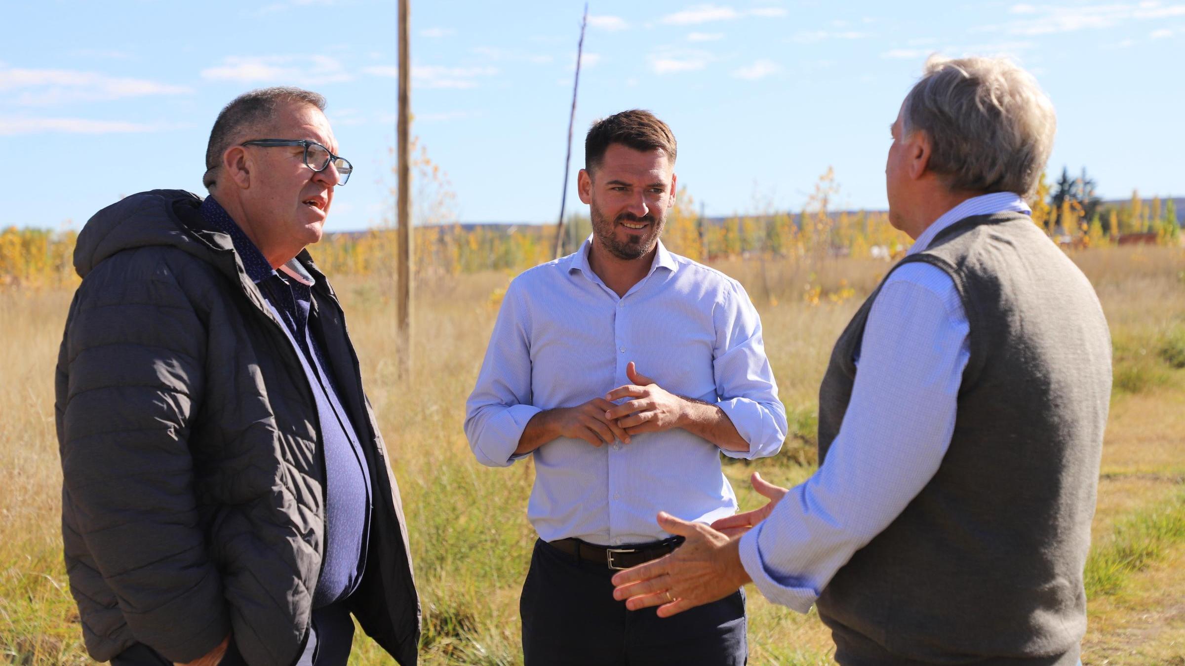 En Villa Regina, a través del programa Río Negro Suelo Urbano, 107 familias tendrán su lote con servicios en el barrio Barazzutti dentro de 60 días. El Ministro de Gobierno y Comunidad Rodrigo Buteler recorrió la obra, que presenta un 60% de avance, junto al intendente Marcelo Orazi y el titular de la empresa a cargo de los trabajos en el predio ubicado en zona rural reginense.