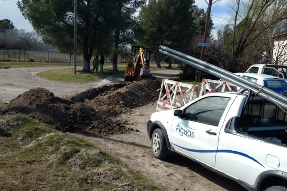 La empresa estatal Aguas Rionegrinas inició los primeros trabajos para la colocación de 570 metros de cañería desde la nueva perforación ubicada frente a policía caminera hasta la planta de agua existente en la localidad.